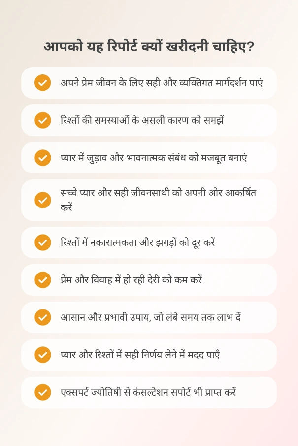 जो लोग विवाह में देरी, सही जीवनसाथी चुनने में कन्फ्यूजन, रिश्तों की समस्याएं या सुखी वैवाहिक जीवन चाहते हैं, उनके लिए यह रिपोर्ट बहुत फायदेमंद है।